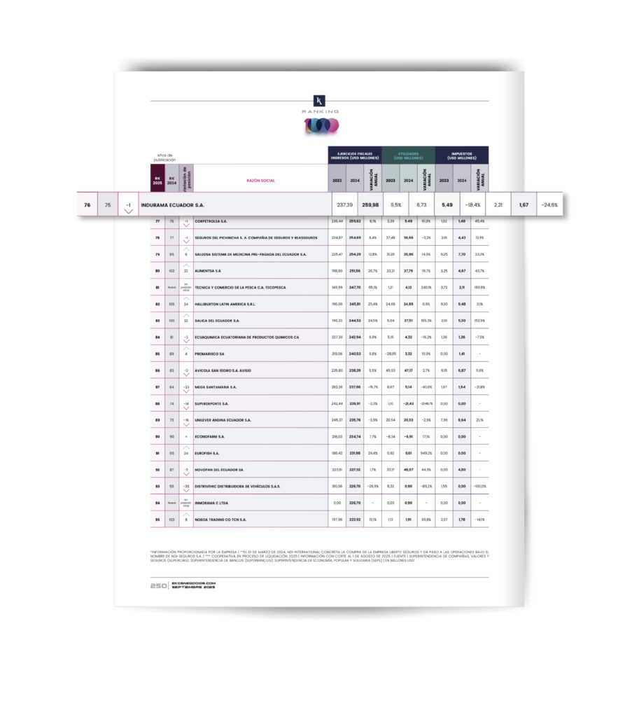 Nos llena de orgullo anunciar que Indurama Ecuador S.A. alcanzó el puesto N.º 76 en el Ranking 1000, publicación elaborada por la revista EKOS, que reconoce a las empresas más grandes del país.