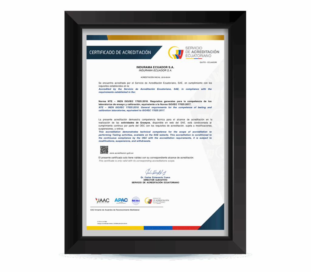 Con orgullo compartimos que Indurama ha obtenido la acreditación oficial otorgada por el Servicio de Acreditación Ecuatoriano (SAE) bajo la norma NTE INEN ISO/IEC 17025:2018, que certifica la competencia técnica de los laboratorios de ensayo y calibración.